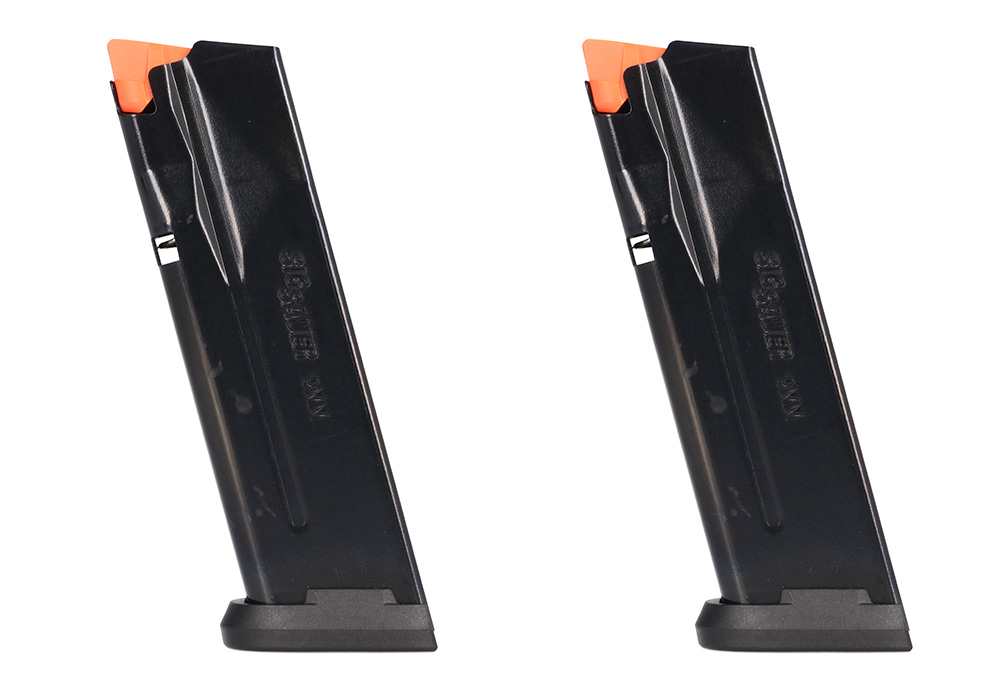 • (2) caricatori in acciaio da 17 colpi con follower ad alta visibilità OPPURE (2) caricatori da 10 colpi • Cinturino posteriore intercambiabile piccolo, medio e grande incluso