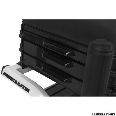 Le Absolute Station sono compatibili con tutti i vassoi e le unità Absolute e Inception Mag-Lok, rendendo il sistema completamente personalizzabile in base alle esigenze dei pescatori. La confezione fornita offre una grande quantità di spazio di archiviazione con due cassetti laterali profondi, un cassetto laterale poco profondo e un vassoio poco profondo da 26 mm con coperchio.