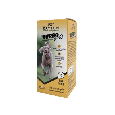 TURBO DOG uno stick pack pronto all’uso, da somministrare direttamente in bocca all’animale, per un rapido e pratico utilizzo, facilmente somministrabile grazie all’altissima appetibilità che lo rende molto gradevole per i gusti del cane. L’ulteriore vantaggio è che può essere miscelato anche all’acqua di abbeveraggio o al cibo gradito, nelle situazioni in cui è necessario un apporto energetico o di elettroliti maggiore.