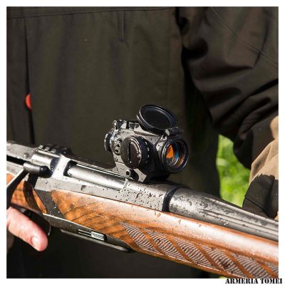 - COMPRENDE: Attacco standard Micro™ per Weaver / Picatinny, coprilente flip-up, pila CR2032, strumento Aimpoint®