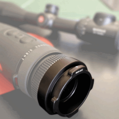 Il Calonox si innesta già perfettamente allineato al cannocchiale. Questo è il vantaggio meno intuitivo ma più importante, rispetto a quello che avviene usando l’adattatore monopezzo. Con quest’ultimo infatti è necessario assicurarsi che il Calonox sia centrato rispetto alla linea di mira del cannocchiale, altrimenti il reticolo del cannocchiale stesso apparirà ruotato verso destra o sinistra. La posizione obbligata di innesto dell’anello sul resto dell’adattatore fa sì che si possa centrare perfettamente la parte da fissare sul cannocchiale prima dell’uscita, ed essere così certi che quando si andrà a innestare il Calonox Sight questo sarà subito perfettamente centrato. Altro risparmio di tempo importante, soprattutto di notte.