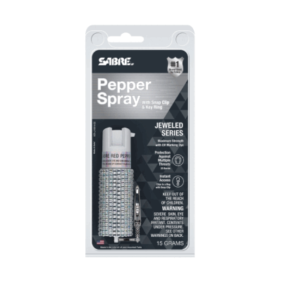 Aggiorna il tuo stile restando al sicuro con un facile accesso alla protezione con lo spray al peperoncino SABRE Jeweled con Snap Clip e Snap Clip. La bomboletta contiene 25 raffiche (5 volte la concorrenza) per una protezione contro minacce multiple da una distanza di sicurezza. Con un laboratorio HPLC esclusivo del settore, solo SABRE garantisce la sua formulazione di massima potenza in ogni bomboletta per aiutarti a darti tranquillità, certezza, affidabilità e sicurezza quando ne hai più bisogno. La sicurezza twist lock impedisce che si verifichi una scarica accidentale nella tua borsa o nella tua borsa. Snap Clip consente un fissaggio rapido e sicuro su chiavi e borse per un facile accesso alla tua protezione quando ne hai più bisogno. Mostra il tuo stile con il design monocromatico scintillante con gioielli in nero, argento o lavanda. Lo spray al peperoncino SABRE è prodotto negli Stati Uniti.