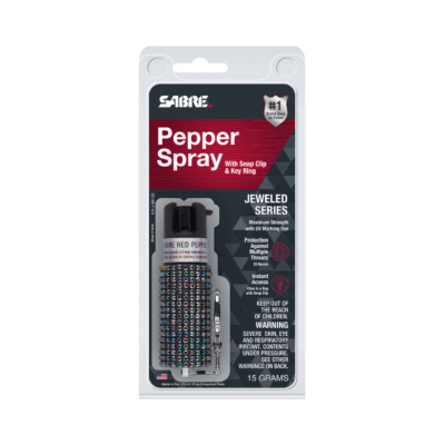 Aggiorna il tuo stile restando al sicuro con un facile accesso alla protezione con lo spray al peperoncino SABRE Jeweled con Snap Clip e Snap Clip. La bomboletta contiene 25 raffiche (5 volte la concorrenza) per una protezione contro minacce multiple da una distanza di sicurezza. Con un laboratorio HPLC esclusivo del settore, solo SABRE garantisce la sua formulazione di massima potenza in ogni bomboletta per aiutarti a darti tranquillità, certezza, affidabilità e sicurezza quando ne hai più bisogno. La sicurezza twist lock impedisce che si verifichi una scarica accidentale nella tua borsa o nella tua borsa. Snap Clip consente un fissaggio rapido e sicuro su chiavi e borse per un facile accesso alla tua protezione quando ne hai più bisogno. Mostra il tuo stile con il design monocromatico scintillante con gioielli in nero, argento o lavanda. Lo spray al peperoncino SABRE è prodotto negli Stati Uniti.