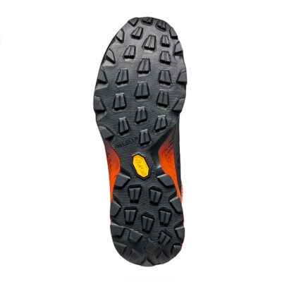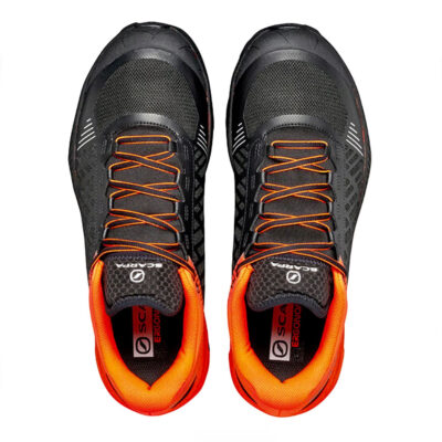 La Spin Ultra GTX Orange Fluo Black di Scarpa è una scarpa da trail running per uomo, perfettamente adatta alla corsa su lunghe distanze e alle sessioni di allenamento prolungate.