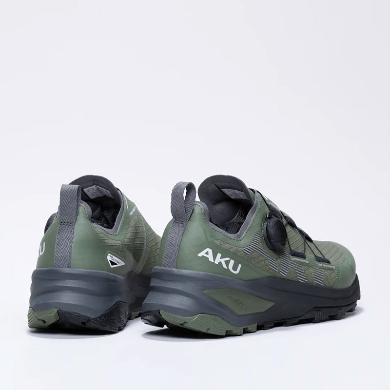 Nuovo design incentrato sull’elemento chiave della trazione. Vibram® ha elaborato il battistrada con micro caratteristiche a forma di aletta (lug), aumentando la superficie di contatto con il suolo del 50%. Vibram® garantisce così una trazione migliore fino al 25%e una miglior stabilità durante l’utilizzo.AKU ha deciso di usare questa tecnologia nelle calzature che necessitano di alte prestazioni e di un grip migliore soprattutto in fase di spinta.