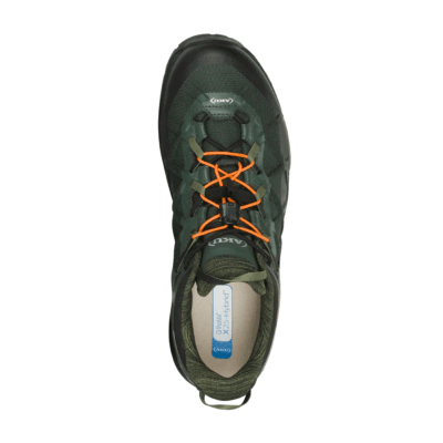 Calzatura destinata all’escursionismo veloce; dinamica e affidabile anche sui percorsi più difficili. ROCKET DFS GTX adotta l’innovativo battistrada Vibram con tecnologia Traction Lug che migliora del 25% la trazione e la tenuta grazie allo speciale design. La tomaia ha una struttura a nervature incrociate ed è protetta da uno strato 3D print. La tecnologia esclusiva AKU Dual Fit System (DFS), qui realizzata nella versione per lo speed hiking, consente di variare il grado di precisione della calzata agendo con semplicità sui due diversi sistemi di allacciatura. E’ costruita con la tecnologia AKU Elica Natural Stride System per favorire l’efficienza biodinamica.