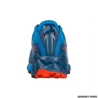 Adotta una tomaia in mesh idrorepellente ed anti-trascinamento molto avvolgente e strutturata su 3 strati che conferiscono dall’interno verso l’esterno: comfort, grazie alla costruzione seamless; flessibilità e struttura grazie all’innovativa applicazione MicroLite Skeleton™ che segue il movimento del piede in modo dinamico durante la corsa; protezione grazie alle applicazioni strutturali Flex-Guard™ che mantengono la calzatura leggera ma fornendo allo stesso tempo una barriera contro le abrasioni possibili correndo tra rocce e radici. L’eccezionale stabilità è data dalla tecnologia TrailCage System™ che posta tra i due strati della tomaia dà struttura ed avvolgenza integrandosi con il sistema di allacciatura. La suola sviluppata dal reparto R&D La Sportiva monta il nuovo battistrada aderente FriXion XT con Impact Brake System e design esclusivo con tecnologia Trail Rocker che favorisce l’appoggio naturale “tacco esterno-punta interna” del piede durante la corsa.