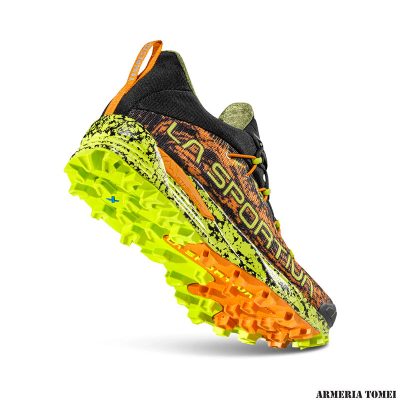 - Tomaia: Single mesh idrorepellente anti-abrasione con stampa in sublimazione + collarino a costruzione Sock-Shield