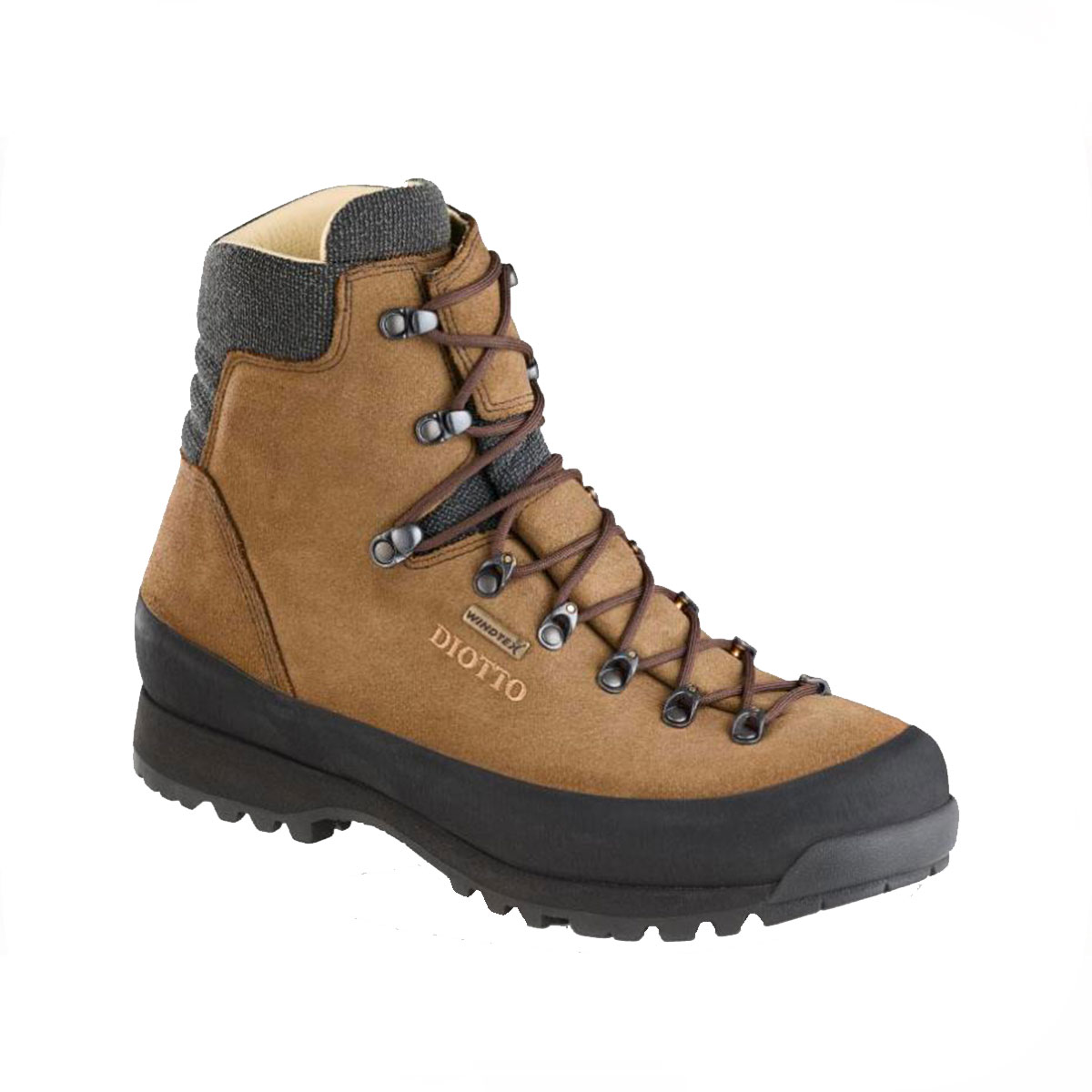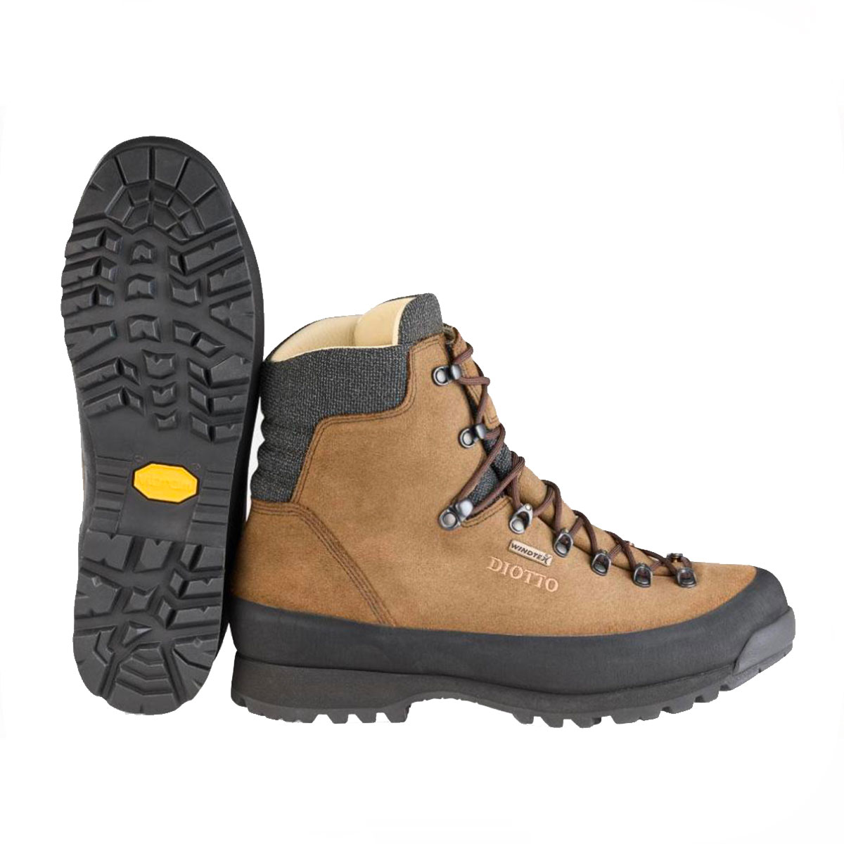 Scarponi da caccia e trekking resistenti in pelle pieno fiore rovesciata con tomaia composta da unico pezzo a una sola piega sovrapposta (brevetto Diotto®) che consente all’acqua e al materiale boschivo di fluire evitando ristagni interni. Lo scarpone è caratterizzato da un fascione laterale in gomma per assorbire gli urti esterni e minuteria applicata con carrucole in acciaio.