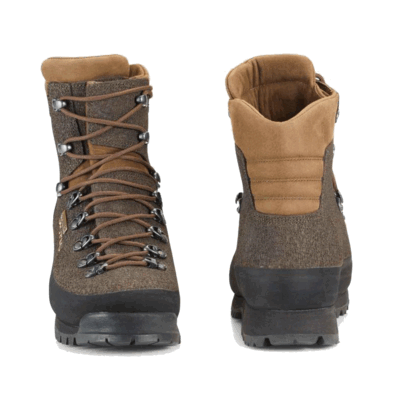 Scarponi da caccia in pelle naturale idrorepellente trattata al poliuretano con una particolare lavorazione che dona alla tomaia un effetto poroso e la protegge dai graffi di rovi, spine e pietre.