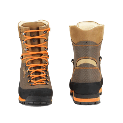 Scarponi da caccia e trekking in pelle naturale idrorepellente trattata al poliuretano con una particolare lavorazione che dona alla tomaia un effetto liscio e offre protezione dai graffi di rovi e pietre, inoltre non permette al fango di attecchire, rendendo lo scarpone facile da pulire.