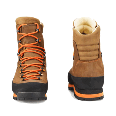 Scarponi da caccia e trekking in pelle Nabuk smerigliata con tomaia composta da unico pezzo con una sola piega sovrapposta (brevetto DIOTTO) che consente all’acqua e al materiale boschivo di fluire evitando ristagni interni.