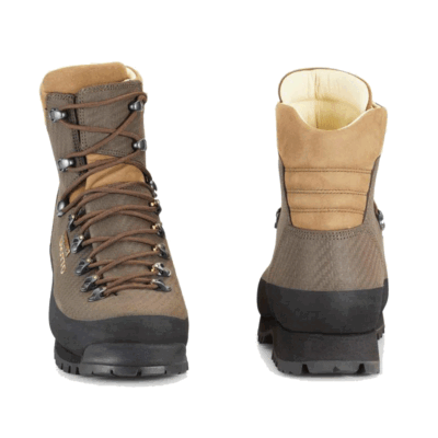 Scarponi da caccia e trekking in pelle naturale idrorepellente trattata al poliuretano con una particolare lavorazione che dona alla tomaia un effetto liscio e offre protezione dai graffi di rovi e pietre, inoltre non permette al fango di attecchire, rendendo lo scarpone facile da pulire.