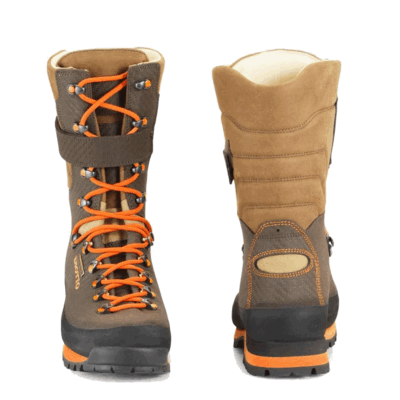 Scarponi da caccia in pelle naturale idrorepellente trattata al poliuretano con una particolare lavorazione che dona alla tomaia un effetto liscio e offre protezione dai graffi di rovi e pietre, inoltre non permette al fango di attecchire, rendendo lo scarpone facile da pulire.
