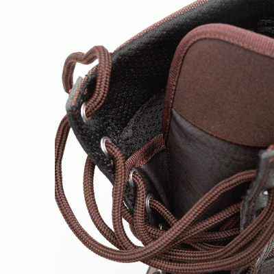 - Tomaia interamente in pelle idrorepellente di colore marrone scuro