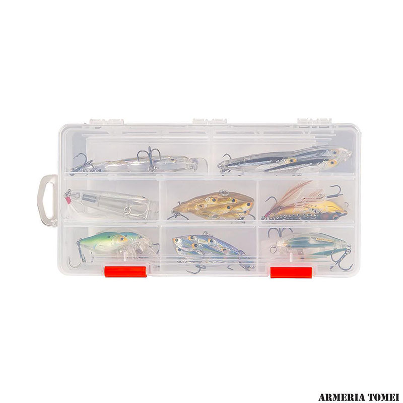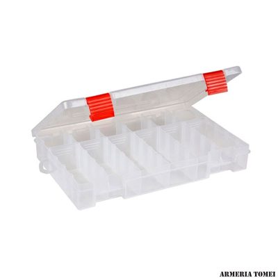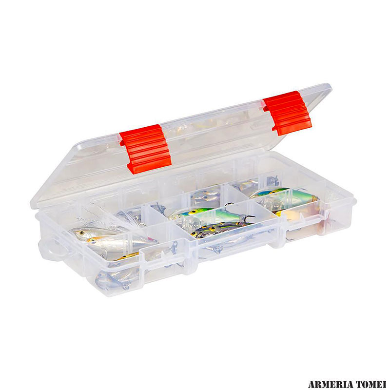 Scatola di piccole dimensioni della serie Plano 3500 Stowaway. nuovo sistema anti ruggine “Rustrictor” capace di prevenire la formazione di ruggine. Contiene 3 celle orizzontali modulabili con i pratici separatori fino ad arrivare a 16 vani separati. Materiale di altissima qualità. Sistema di chiusura perfetto ed affidabile. Capace di contenere esche artificiali e minuteria.