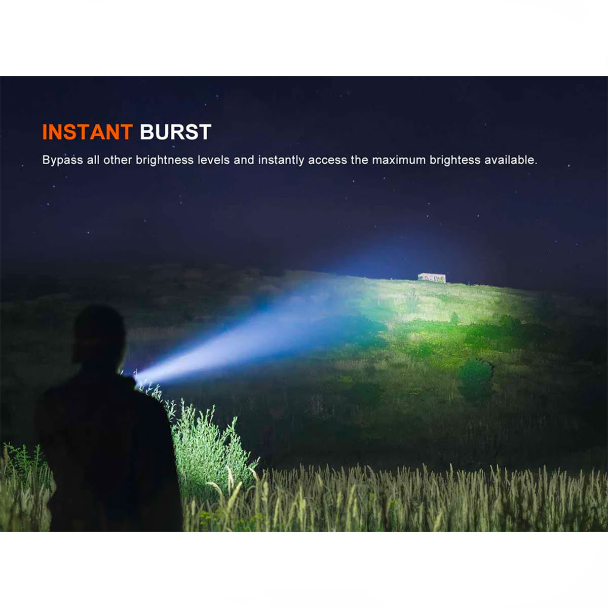 - Con la luce accesa, premere a fondo l’interruttore tattico per 0,5 secondi per attivare la modalità Burst, rilasciarlo per richiamare l’output utilizzato in precedenza.
