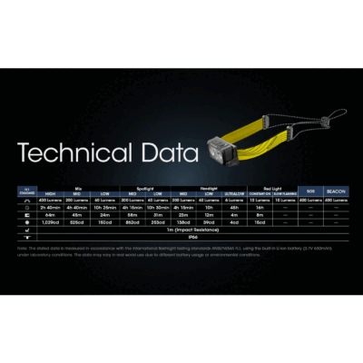 - Modi Operativi: 10 potenze luminose (Mix, Spot, Flood, Rosso) + 2 modalità speciali (SOS e Beacon)