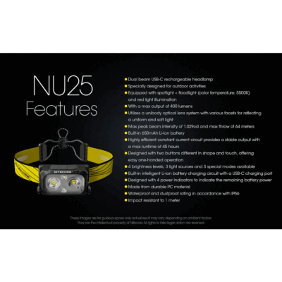 Nitecore – NU25 – Black – Frontale Ricaricabile USB – 400 lumens e 64 metri – Torcia Led