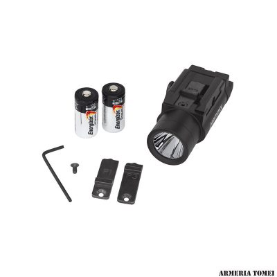 La luce tattica montata su arma TWM-850XLS Xtreme Lumens™ utilizza un LED valutato a 850 lumen che funziona in combinazione con un riflettore parabolico profondo ad alta efficienza per creare un raggio di luce utilizzabile valutato a 245 metri. Questa luce per armi è dotata di un interruttore a levetta Dual Dependent unico e completamente ambidestro su ciascun lato della luce per azionare le modalità di illuminazione momentanea e costante. L’alloggiamento del TWM-850XLS è realizzato in alluminio 6061-T6 aeronautico con uno sportello della batteria in polimero di nylon riempito di vetro e interruttori a levetta. L’alimentazione proviene da due batterie CR123 incluse. (Non compatibile con batterie ricaricabili.)