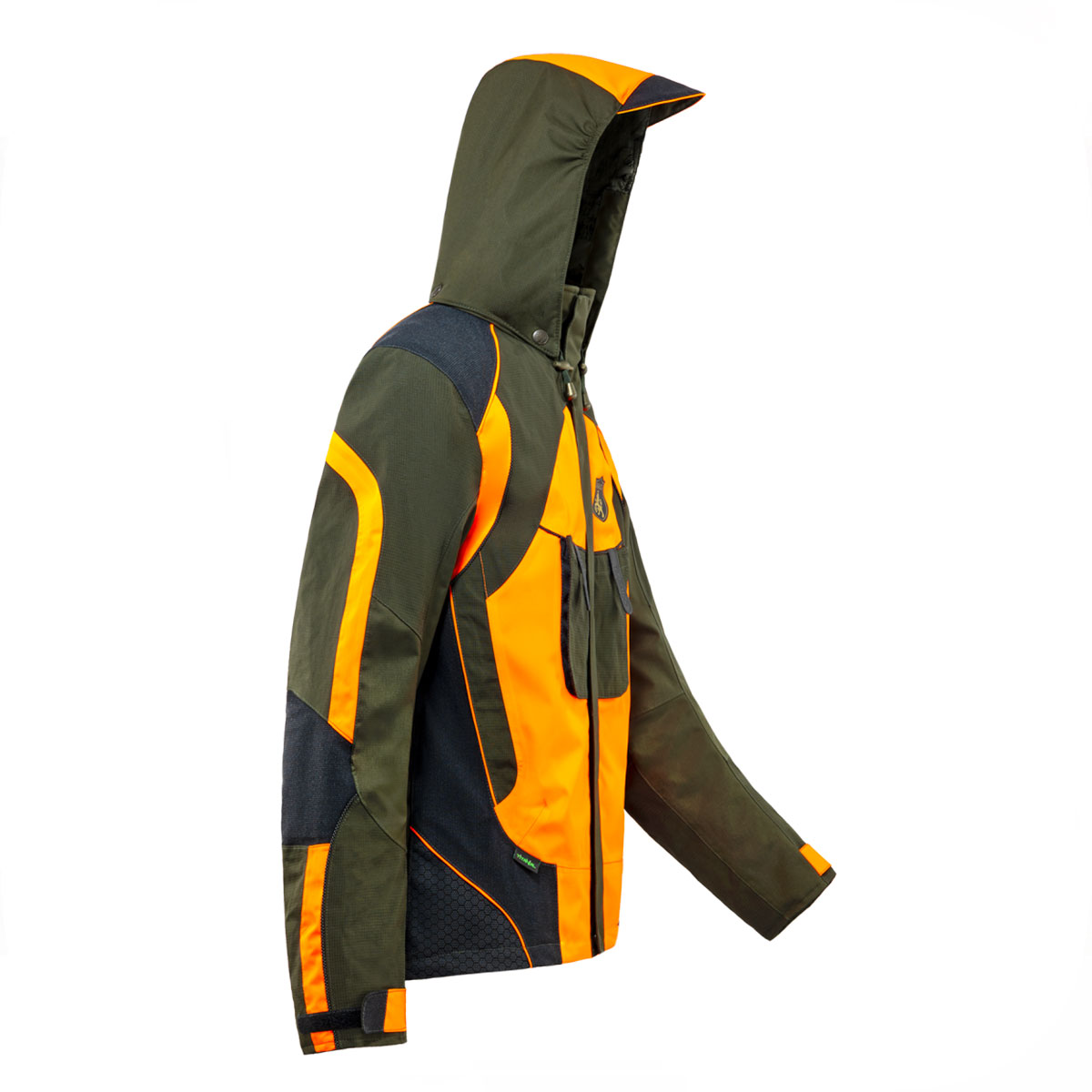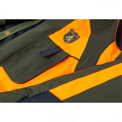 Il nostro modello Genesis evolve nella versione Evo: una giacca versatile ideata per le giornate di pioggia invernali. GENESIS EVO fa del rapporto peso/resistenza la sua arma vincente, rendendo questa giacca il prodotto in grado di adattarsi alle più svariate situazioni che la caccia con il cane da ferma può presentare. Il tessuto in alta visibilità è impiegato diffusamente nelle parti centrali del capo, mentre a garanzia di una maggiore protezione su maniche e spalle troviamo il nostro TITANIAL LIGHT. TITANIAL LIGHT è la versione alleggerita dell’ormai consolidato tessuto TITANIAL, che declina elevate resistenze alla lacerazione e allo snagging, ad una leggerezza senza precedenti. Gli inserti in KETRATEX STRETCH su spalle, gomiti, fianchi e schiena donano elasticità al capo, garantendo così una vestibilità asciutta senza rinunciare al confort. Ad impermeabilizzare il tutto troviamo la nostra membrana RAINSYSTEM, laminata direttamente sui tessuti esterni. Questa lavorazione della membrana, oltre a tenervi asciutti e impermeabilizzare le tasche esterne, limita l’assorbimento d’acqua evitando al capo di appesantirsi anche dopo un lungo stazionamento sotto la pioggia. GENESIS EVO incorpora tutti gli accorgimenti tipici delle nostre giacche top di gamma: doppi tasca porta palmare frontale, carniere a doppia entrata posteriore, cappuccio staccabile, doppia lampo interna per l’aggancio di un pile e bretella per il trasporto a spalla.