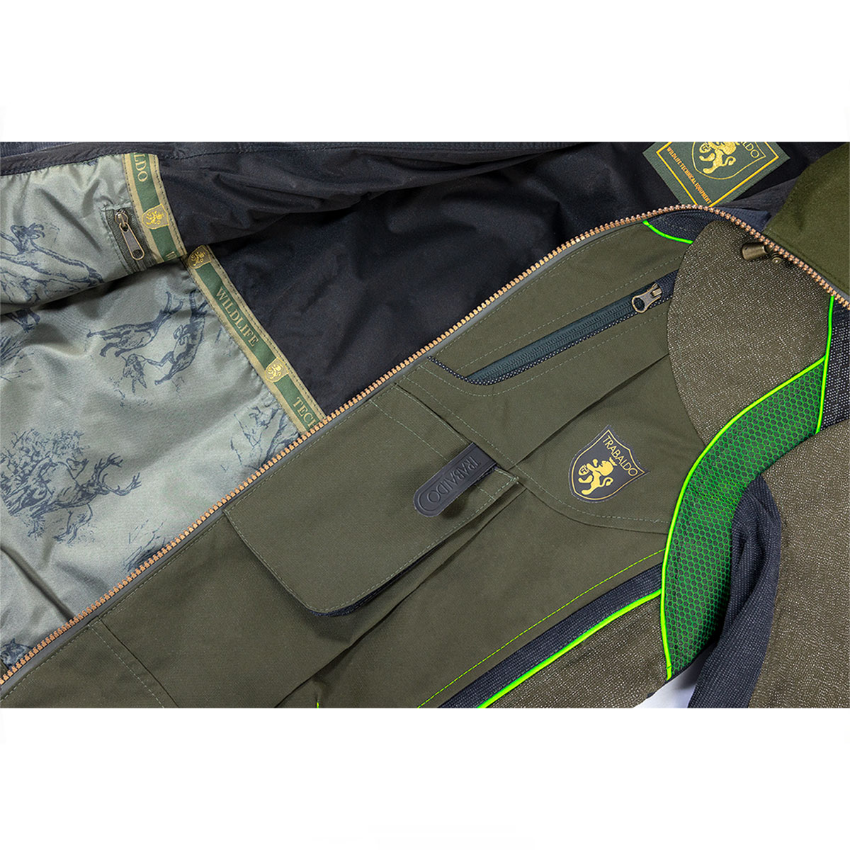 NEMESIS EVO è la giacca dedicata alla nostra linea TITANIAL® che ne riprende le caratteristiche principali trasportandole in un capo impermeabile dalle performance elevate. Nato in Trabaldo dalla profonda conoscenza delle tecniche di tessitura e proprietà fisiche delle fibre, TITANIAL® è espressione del massimo livello oggi raggiungibile con le tecnologie più avanzate, per ottenere tessuti che sappiano coniugare leggerezza e traspirazione ad una tenacità allo strappo e allo snagging senza paragoni. Composto da un mix di fibre ad alta tenacità tra cui il Dyneema®, 15 volte più forte dell’acciaio, TITANIAL® è un nuovo traguardo per le esigenze di alleggerimento dei pesi ed elevazione delle resistenze che il mondo venatorio necessita per il miglioramento delle performance di durata e il benessere di utilizzo quotidiano. Se questo non fosse sufficiente NEMESIS EVO include gli inserti in KETRATEX bi-stretch nel sottomanica e sulla schiena per offrirvi un capospalla dalle vestibilità asciutte senza rinunciare al confort e alla leggerezza. NEMESIS EVO da spazio a tutte le esigenze venatorie grazie alla Zip laterale per aumentare la circonferenza della giacca, agevolando l’utilizzo della cintura porta colpi, al carniere espandibile a doppia entrata con scomparti separati per ampi volumi di carico e alla doppia tasca frontale porta palmare/radio.