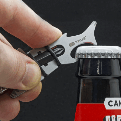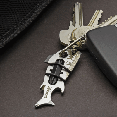 Lo strumento per la pulizia delle unghie funge anche da taglierino. Sharkey ospita anche un apribottiglie, un piede di porco e una lima.