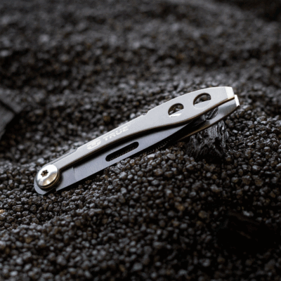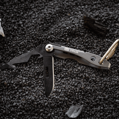 Dotato di una lama pieghevole non bloccabile rivestita in ossido nero da 4 cm. Una chiave per strumento pieghevole separata ospita un piccolo cacciavite piatto, una lima grossa, un apribottiglie e un taglierino di sicurezza per il volo.
