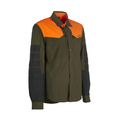 Camicia da caccia CORTINA, particolarmente elasticizzata e comoda da indossare, grazie al tessuto nylon stretch che agevola i movimenti e di asciugatura rapida. Maniche con applicazione in CK-TEX per una maggiore protezione. Due tasche al petto con zip.