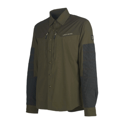 Camicia da caccia CORTINA, particolarmente elasticizzata e comoda da indossare, grazie al tessuto nylon stretch che agevola i movimenti e di asciugatura rapida. Maniche con applicazione in CK-TEX per una maggiore protezione. Due tasche al petto con zip.