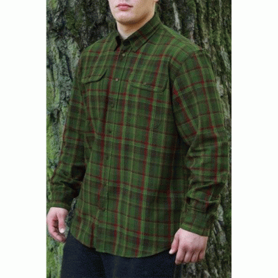 Pratica camicia in flanella di cotone con due tasche al petto con chiusura a bottone a scatto.