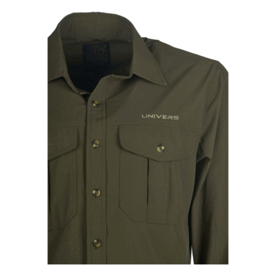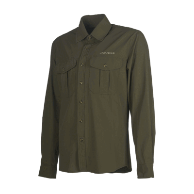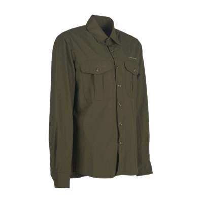 Camicia da caccia PINZOLO, particolarmente elasticizzata e comoda da indossare, grazie al tessuto nylon stretch nelle quattro direzioni che agevola i movimenti e di asciugatura rapida. Due tasche al petto con pattina.