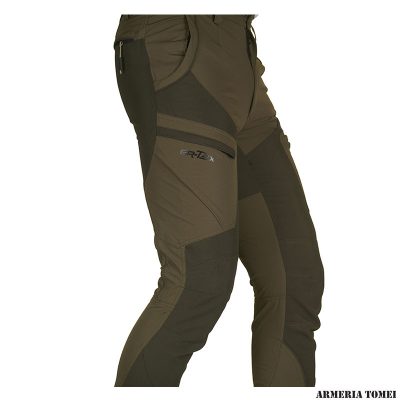Pantalone da caccia ALPI dalla forma ergonomica realizzato in poliammide micro-ripstop elasticizzato leggero e confortevole con rinforzi in tessuto GR-TEX nella parti a maggiore usura. Dotato di quattro tasche frontali, due tasche posteriori, elastico ai fianchi.