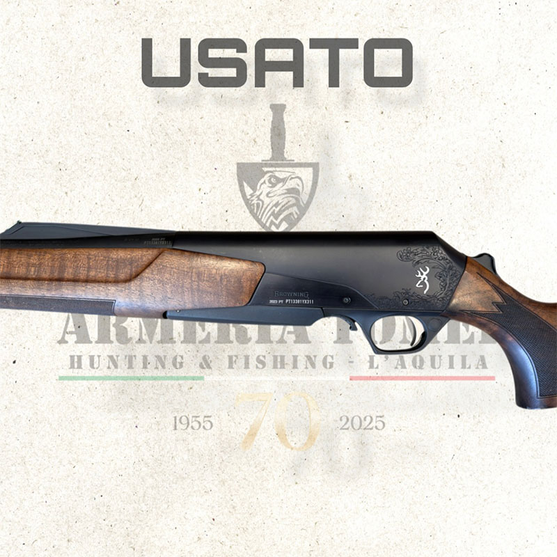 Carabina Browning usata in perfette condizioni, pari al nuovo. Testata dalla nostra officina. Calciatura in legno in ottimo stato, canna Fluted scanalata con coprifiletto, internamente perfetta.