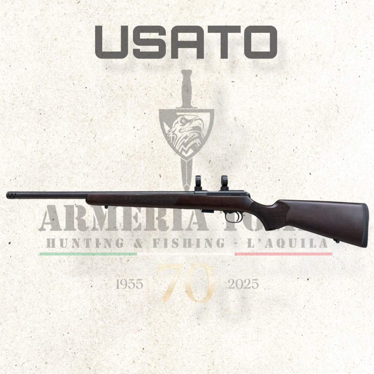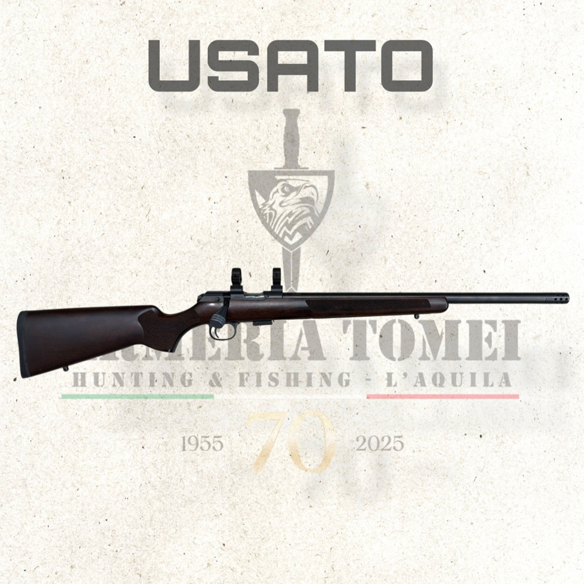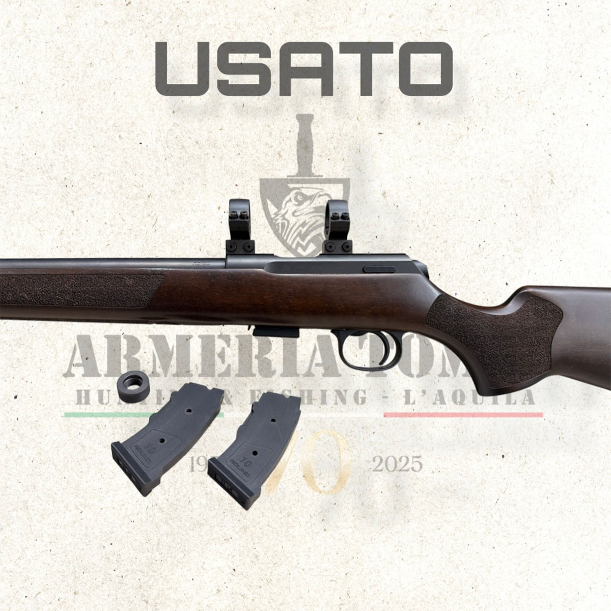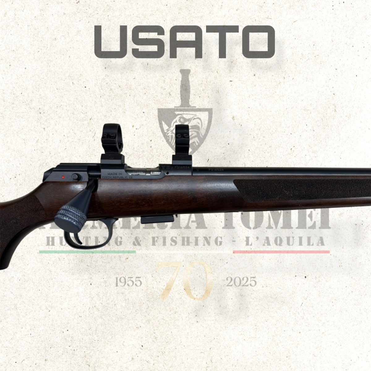 Carabina CZ bolt action in calibro 22lr usata in perfette condizioni, come nuova. Legni perfetti. Completa di pomello otturatore maggiorato, freno di bocca, coprifiletto, anelli originali CZ, 3 caricatori totali: 2 da 10 e 1 da 5 colpi.