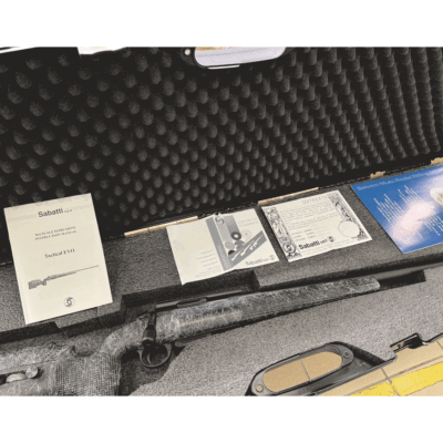 Carabina Sabatti usata a scopo dimostrativo, pari al nuovo. Completa di valigetta e corredo originale.