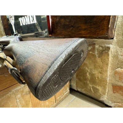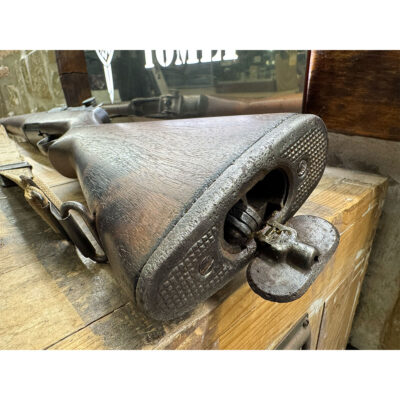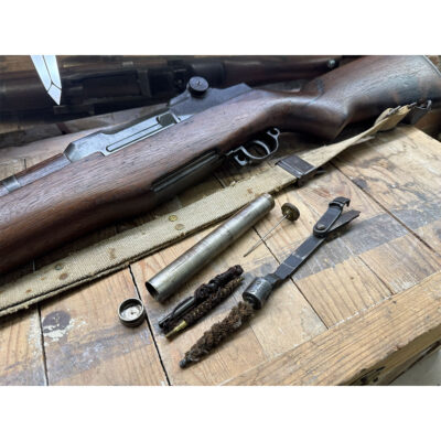 Carabina Springfield Armory usata in buonissime condizioni, nonostante l’età. Interamente originale (anche la canna). Il lato sinistro del calcio presenta due punzonature,sa e.m.c.f indica l’arsenale Springfield armory e Earl Macfarland l’ispettore dell’esercito, in carica dal giugno 1942 all’ottobre 1943 ,addetto al collaudo e alla accettazione dei pezzi prodotti.é molto difficile reperire calci con ancora le punzonature applicate in quanto venivano perse con l’uso o durante levigature eseguite posteriormente per il recupero dei calci, ancora utilizzabili, da parte degli arsenali. Con lock bar, meccanica perfettamente funzionante, cinghia originale. All’interno del calcio c’è ancora il suo originale kit pulizia. Grande affare.