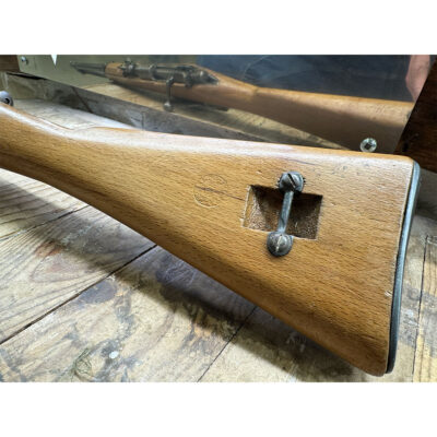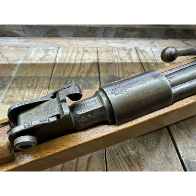 Moschetto in buonissime condizioni nonostante l’età. Canna rigata e completo di baionetta regolamentare BALILLA prodotto dalla ditta Grazian di Verona nel 1940, in condizioni ottime di ferri e legno e con la brunitura originale dell’epoca. Questa modello veronese si contraddistingue per la presenza di parti in ottone. Canna rigata, sulla canna ha il punzone Grazian Verona con l’anno di fabbricazione “1940 XXIII” (23° dell’ Era Fascista), sulla parte anteriore della culatta è ben incusso il fregio dell’G.I.L. con fascio (Gioventù Italiana del Littorio). E’ presente anche il punzone F.M.B. presumibilmente di “Fucile Modello Brevettato”. Sulla pala del calcio è presente un timbro tondo con “F.lli Grazian – Verona” con la matricola corrispondente all’azione e quello di “collaudo” presso la GIL. Il moschetto Balilla (il nome deriva da Giovan Battista Perasso o Giambattista, detto Balilla, figura storica di patriota della Genova del Settecento, avvolta nella leggenda e nel mistero), ha le stesse sembianze di una moschetto modello 1891 tipo cavalleria, ma in dimensioni ridotte. Era destinato all’addestramento premilitare dei ragazzi dai 6 ai 12 anni. Oggi è considerato da molti collezionisti una vera e propria ex ordinanza, fu adottato ufficialmente dalla Presidenza centrale dell’Opera Nazionale Balilla che, nel 1931, ne commissionò la produzione alla F.N.A. di Brescia già P. Lorenzotti. Ad essa si aggiunsero, appunto, la GRAZIAN di Verona e la “NeVC” (Napoleone e Vittorio Castelli) di Brescia. Questo è in condizioni ottime di meccanica e canna. Vero pezzo di Storia completo di baionetta e aste di pulizia.
