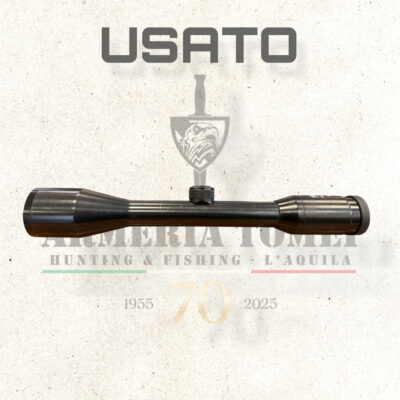 Ottica usata in buone condizioni nonostante l’età. Segni di montaggio anelli. Completa di scatola e corredo originale.