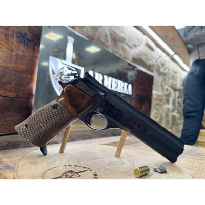 Pistola in ottime condizioni, pari al nuovo e non comune Beretta modello 76 in calibro 22lr. Appartenuto a collezionista. Canna e meccanica perfette come la brunitura originale. Classificazione sportiva Ottimo per uso al poligono o collezione. Completo di scatola e corredo originale.
