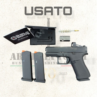 Pistola Glock usata in perfette condizioni, come nuova. Questo modello viene fornito con un red dot della Shield ed è l’evoluzione della GLOCK 43, in Gen5. Sgancio caricatore reversibile, sblocco carrello ambidestro, bevertail maggiorato per una presa più sicura, rail sotto il fusto per montare accessori, carrello con finitura in nDLC, canna GLOCK Marksman (GMB), incredibilmente precisa, e che caratterizza la serie Gen5. Il carrello presenta anche le fresature frontali per una migliore presa anche con mani bagnate o sudate. Con il caratteristico sistema di scatto “Safe Action”, la GLOCK 43X RAIL / MOS / FS è sicura, facile da usare, affidabile e precisa, esattamente ciò di cui hai bisogno. Completa di valigetta e corredo originale: