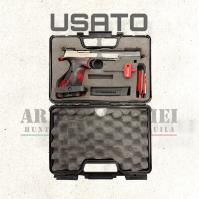 Pistola Hammerli X-esse Sport usata pari al nuovo. Completa di 2 caricatori da 10 colpi, chiave a brucola e valigetta originale. Grilletto regolabile da 1000 a 1360 g. Mirini regolabili in elevazione e deriva.