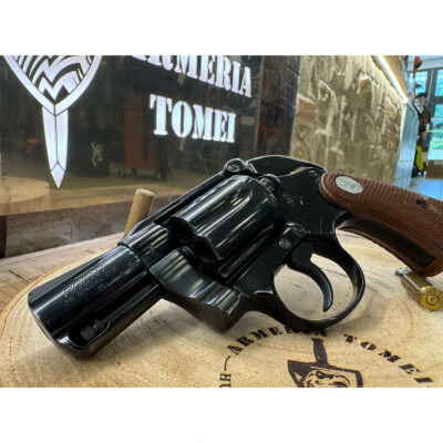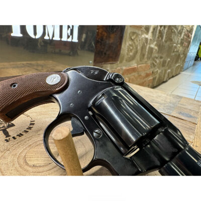 Revolver usato in perfette condizioni, modello Agent Second Issue, tamburo da 6 colpi, fusto in lega leggera, guancette in legno originali, raro hammer shroud (carter) copricane originale Colt installato in fabbrica con logo cavallino. Modello prodotto dal 1973 al 1981, questo esemplare è del 1975. Prodotto di non facile reperibilità.