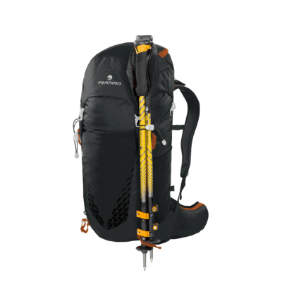 - Accessori: Due porta bastoncini / picozze | Nastri di compressione laterale | Nastri addizionali frontali amovibili porta materiali | Asola porta materiali su fascia a vita | Compatibile col sistema di idratazione H2 bag | Compatibile con “Helmet Holder”.